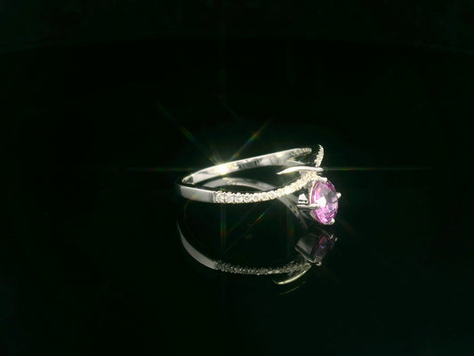 18K White Gold, Oval Shape Pink Sapphire & Diamond Bypass Ring