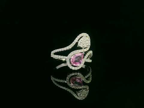 18k White Gold Pear-Shaped Pink Sapphire & Diamond Double Drop Ring