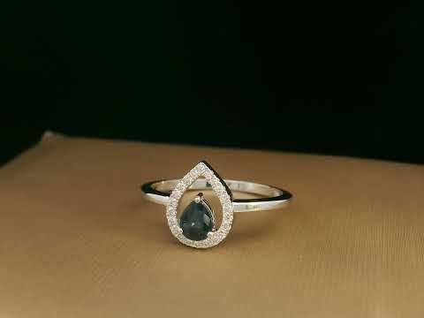 Pear-Shaped Blue Sapphire & Diamond Ring in 18k White Gold
