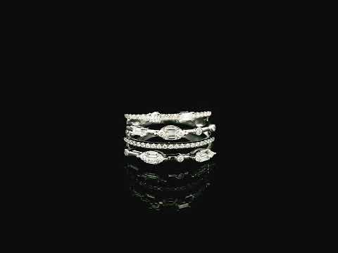 Diamond Ring with Round & Baguette Diamonds in 18K White Gold