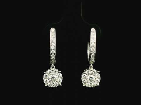 Stunning 18K White Gold Diamond Drop Hoop Earrings (1.52ct Diamonds)