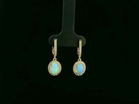 Opal & Diamond Halo Drop Earrings in 18K Yellow Gold