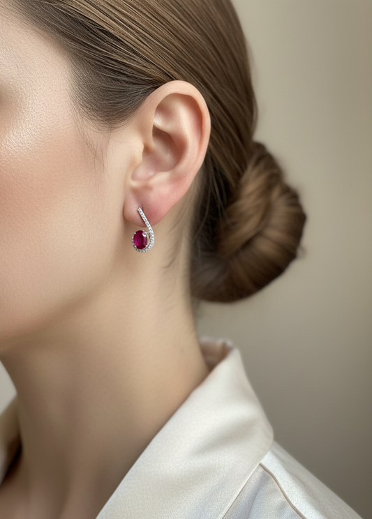 18k White Gold Oval Ruby & Diamond Pave Curve Earrings – Luxury Fine Jewelry