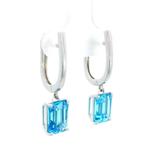 18k White Gold Swiss Blue Topaz Drop Earrings | 6.05 Carats