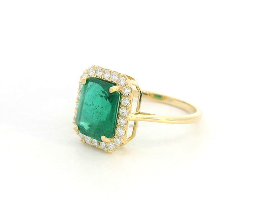 Emerald & Diamond Halo Ring in 18K Yellow Gold