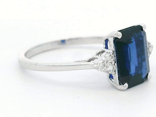 Stunning 18K Gold Emerald-Cut Sapphire Ring with Round Diamond Accents