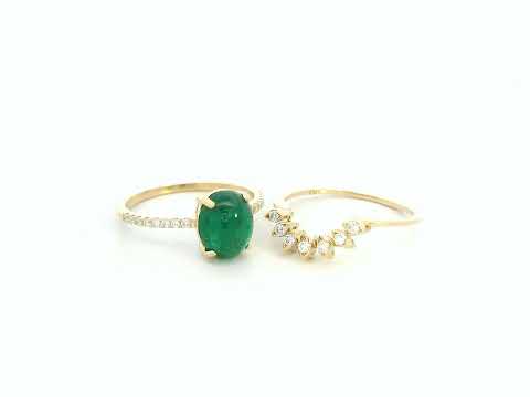 18k Yellow Gold Emerald Engagement Ring & Diamond Wedding Band Set – Bridal set