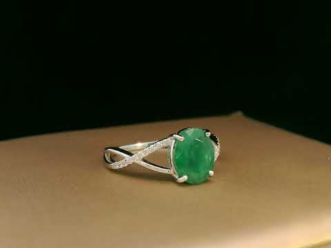 18K White Gold, Oval Shape Emerald and Diamond Split-Shank Ring – 1.59ct Emerald