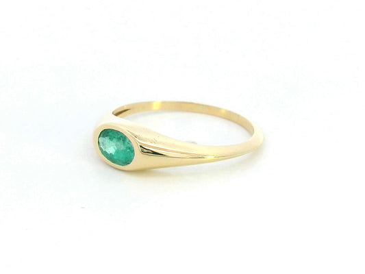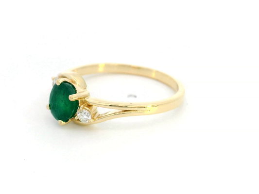 18K Yellow Gold Oval Emerald & Diamond Ring – 0.75 Carat Emerald