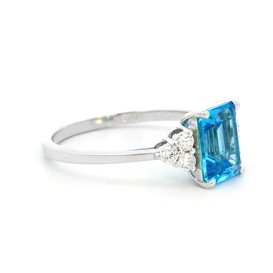 Emerald-Cut Swiss Blue Topaz & Diamond Ring in 18K Gold | 1.66ct Topaz
