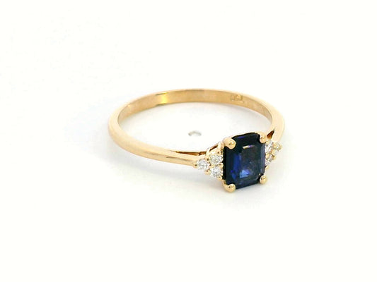 Elegant 18K Gold Emerald Cut Blue Sapphire and Diamond Ring – 0.68ct Sapphire