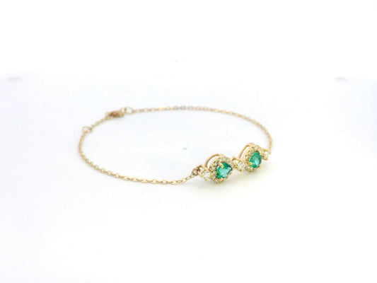 18K Gold Heart Emerald & Diamond Bracelet – 0.57 Carat Emeralds, 0.38 Carat Diamonds