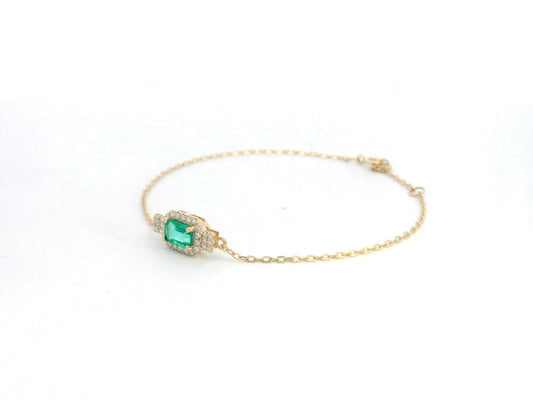 Minimalist 18K Gold Emerald Bracelet with Diamonds | 0.48ct Emerald & 0.17ct Diamonds