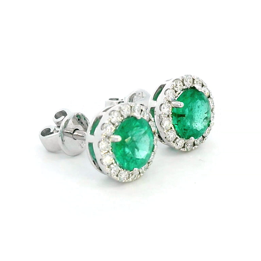 Elegant 18K Gold Emerald and Diamond Halo Earrings