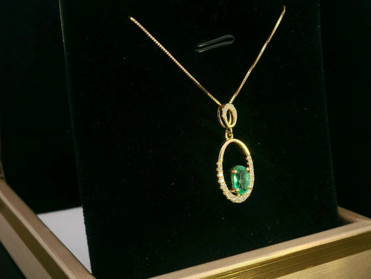 18K Gold Oval Emerald & Diamond. Oval Pendant – Perfect for Layering