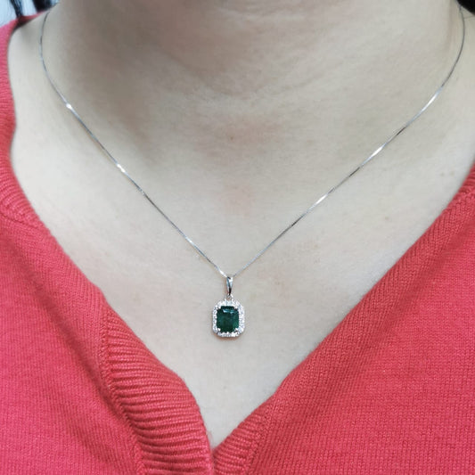 18K Gold Emerald-Cut Emerald & Diamond Halo Pendant.