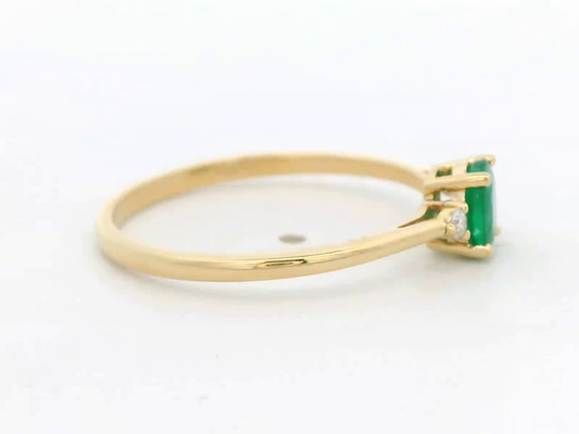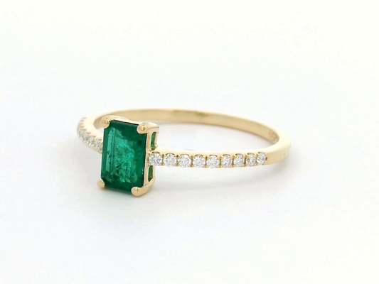 18K Gold Emerald-Cut Emerald Ring – 0.48 Carat Gemstone with 0.11 Carat Diamond Band