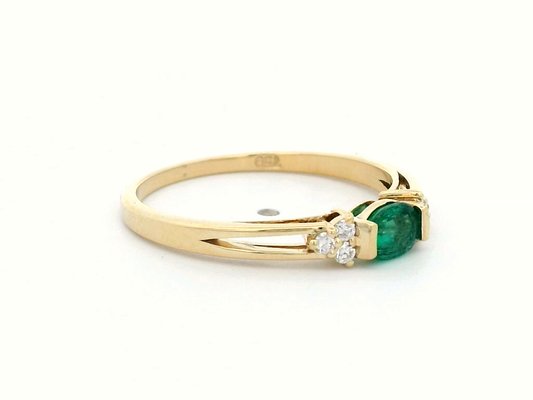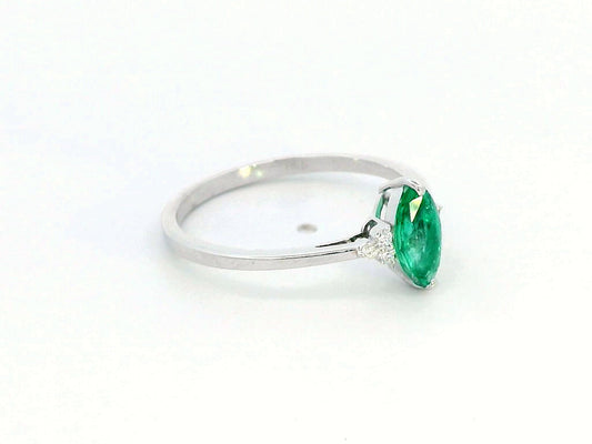18K Gold Emerald Ring | 0.55ct Marquise Emerald with Diamond Accents