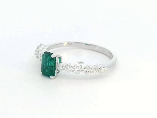 18k White Gold Emerald and Diamond Ring – 0.65 Carat Emerald, 0.40 Carat Diamonds