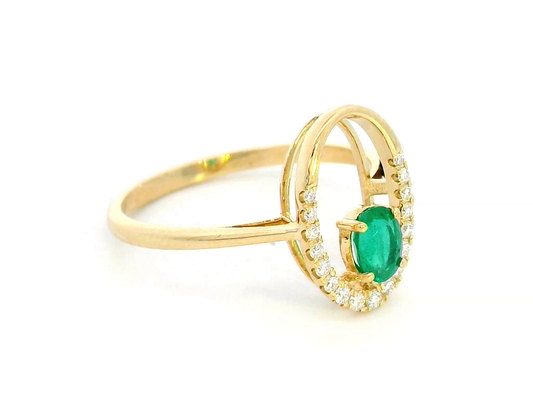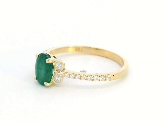 18k Yellow Gold Oval Cut Emerald Ring with Round Diamond Accents