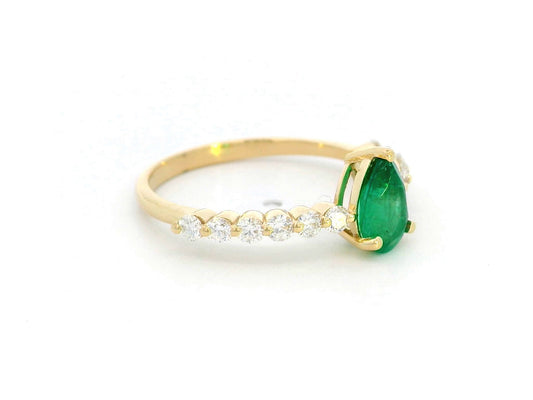 Luxurious 18K Gold Pear-Cut Emerald Ring with Diamonds on the band