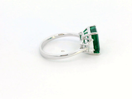 18K Gold Emerald Cut Emerald Ring – 3.47 Carat with Tapered Baguette Diamonds