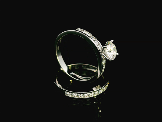 1.00 Carat Round Diamond Bridal Set - 18K White Gold Engagement Ring and Wedding Band