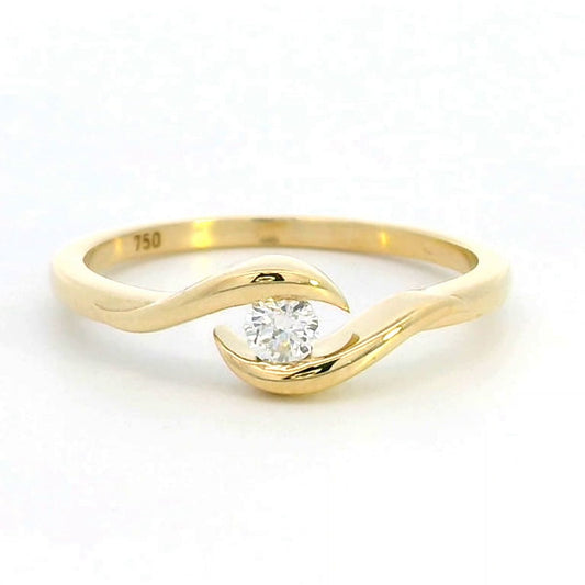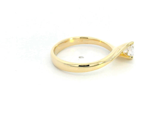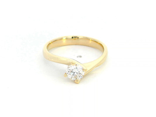 18K Yellow Gold Solitaire Engagement Ring – 0.47 Carat Round Diamond with Twist Band