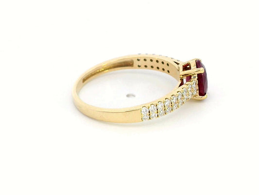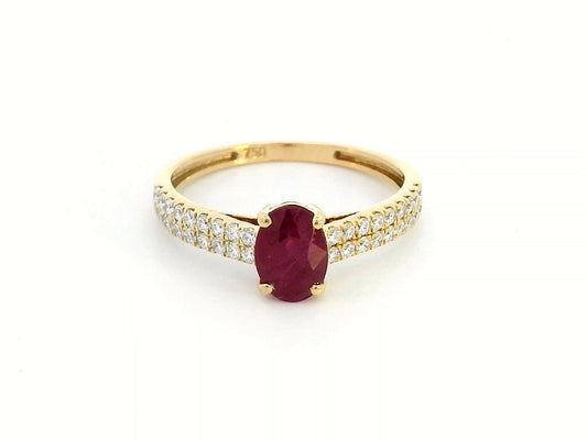 18K Gold Oval Ruby Ring with Diamond-Accented Band