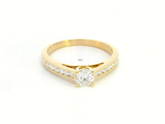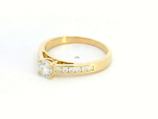 18K Yellow Gold Solitaire Diamond Ring with Accented Channel-Set Band - 0.71ct Total