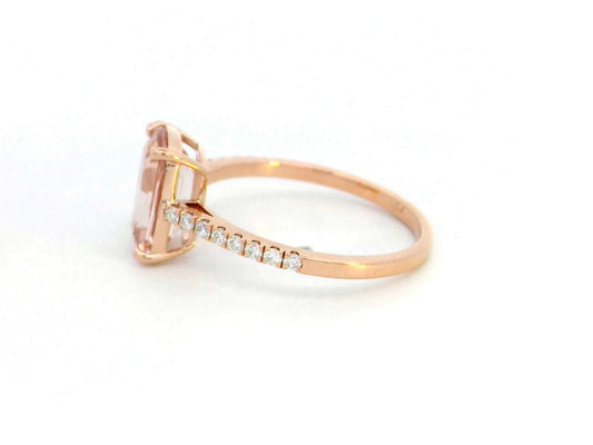 18K Rose Gold Morganite and Diamond Ring | 1.94ct Elongated Cushion Cut Morganite