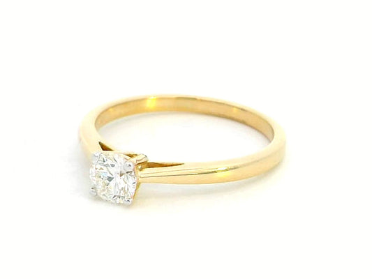 18K Yellow Gold Solitaire Diamond Ring – 0.46 Carat Round Brilliant Cut