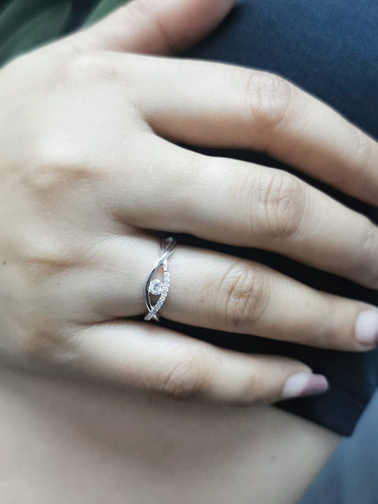 Infinity Diamond Ring in 18k Gold – 0.14ct Round Center Stone with 0.08ct Accent Diamonds for Women