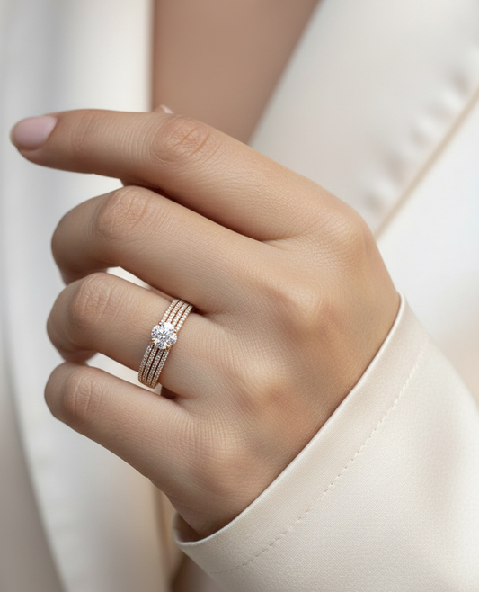 18K Gold Solitaire Diamond Ring with 0.30ct Round Cut – Knife-Edge Band