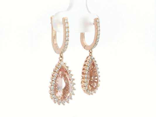 Pear-Shaped Morganite and Diamond Drop Earrings in 18K Rose Gold