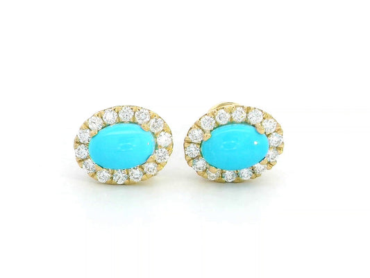 Oval Turquoise and Diamond Halo Stud Earrings in 18K Yellow Gold