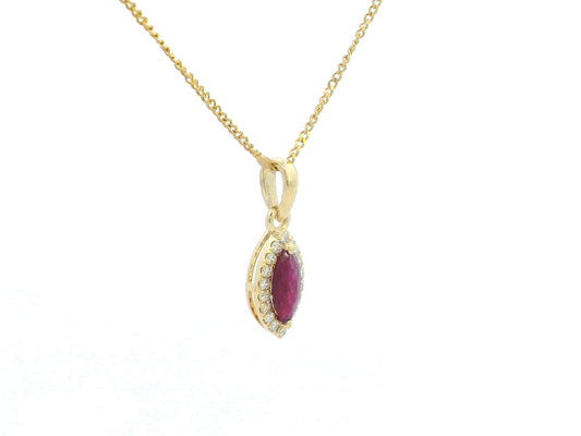 18K Gold Marquise Ruby & Diamond Halo Pendant – Elegant Red Gemstone Pendant