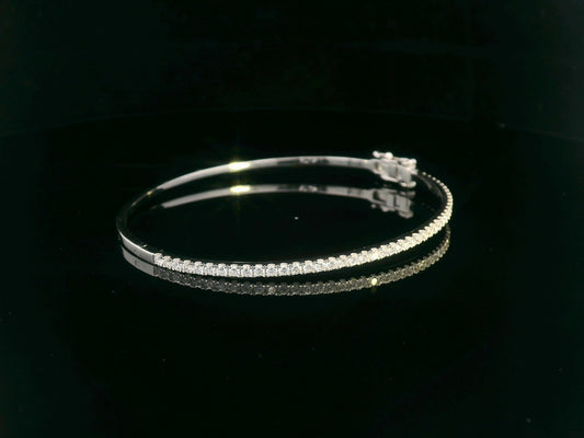 Classic Diamond Bangle in 18K White Gold – 0.92 Carat Single Row Design