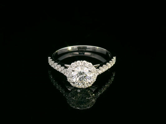 18K Gold Diamond Halo Engagement Ring – 0.53ct VVS1 G Center Diamond