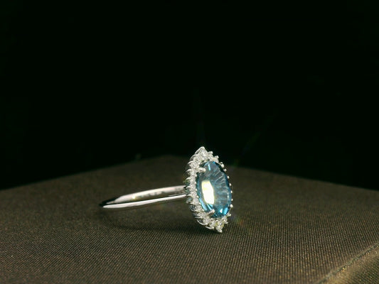18k White Gold London Blue Topaz & Diamond Halo Ring | 2.19 CT Gemstone