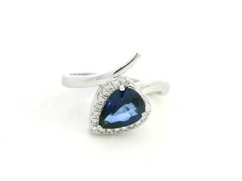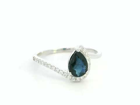 Pear-Shaped Blue Sapphire & Diamond Ring in 18k White Gold