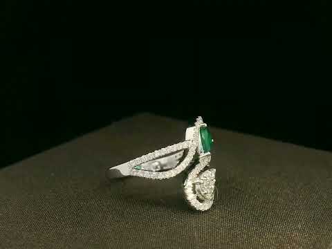 18k Gold Emerald & Diamond Bypass Ring – Toi et Moi Pear-Cut Design