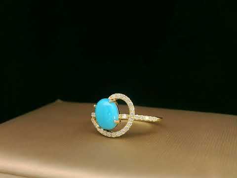 18K Yellow Gold Turquoise and Diamond Statement Ring – 1.21ct Turquoise