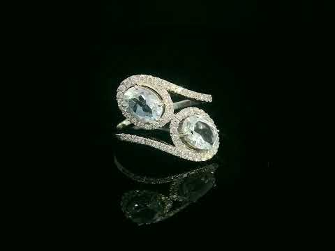 18k White Gold Twin Aquamarine Bypass Ring with Diamonds – 1.42 ct