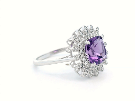 Amethyst & Diamond Sunburst Ring in 18K Gold | 2.02ct Amethyst