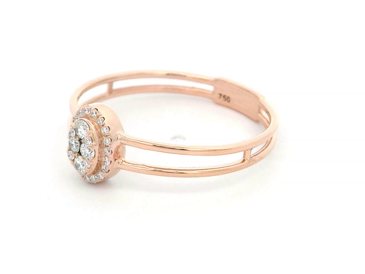 18K Rose Gold Double-Band Oval Halo Ring with 0.15 Carat Diamonds