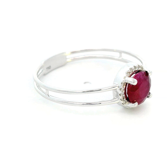 1.14 Carat Round- cut Ruby & Diamond Halo Ring in 18K White Gold – Double Band Statement Ring