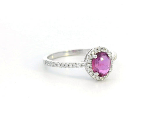 18K Gold, Oval-shape Pink Sapphire with Diamond Halo Ring