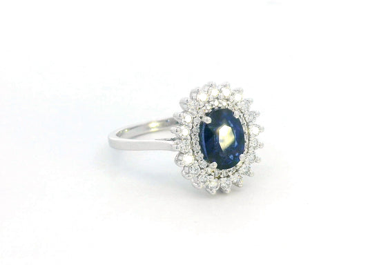 Oval Blue Sapphire and Diamond Halo Ring in 18K Gold