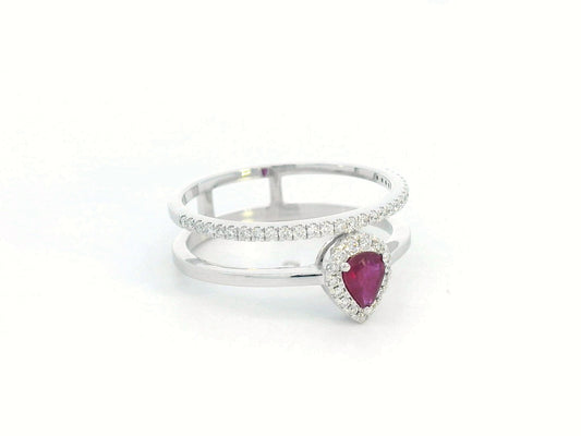 18K Gold Pear-Shaped Ruby and Diamond Double Band Ring